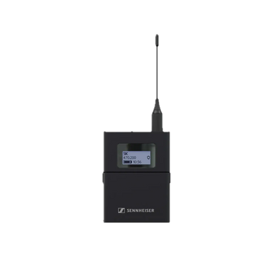 Digital wireless bodypack transmitter with 3.5 mm jack connector compatible with Evolution Wireless Digital systems. Rugged metal housing, up to 12 hours of runtime, persistent E-Ink display and charging contacts for in-device charging. Compatible with a wide range of Sennheiser lavalier and headset microphones.